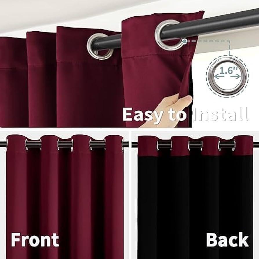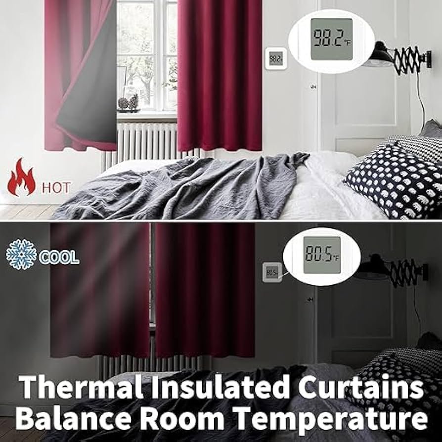 100 Blackout Curtain Thermal Insulated Full Room Darkening Noise Reducing Double Layer Curtain with Black Liner, Sold as 1 Curtain(Black Liner)