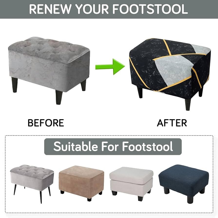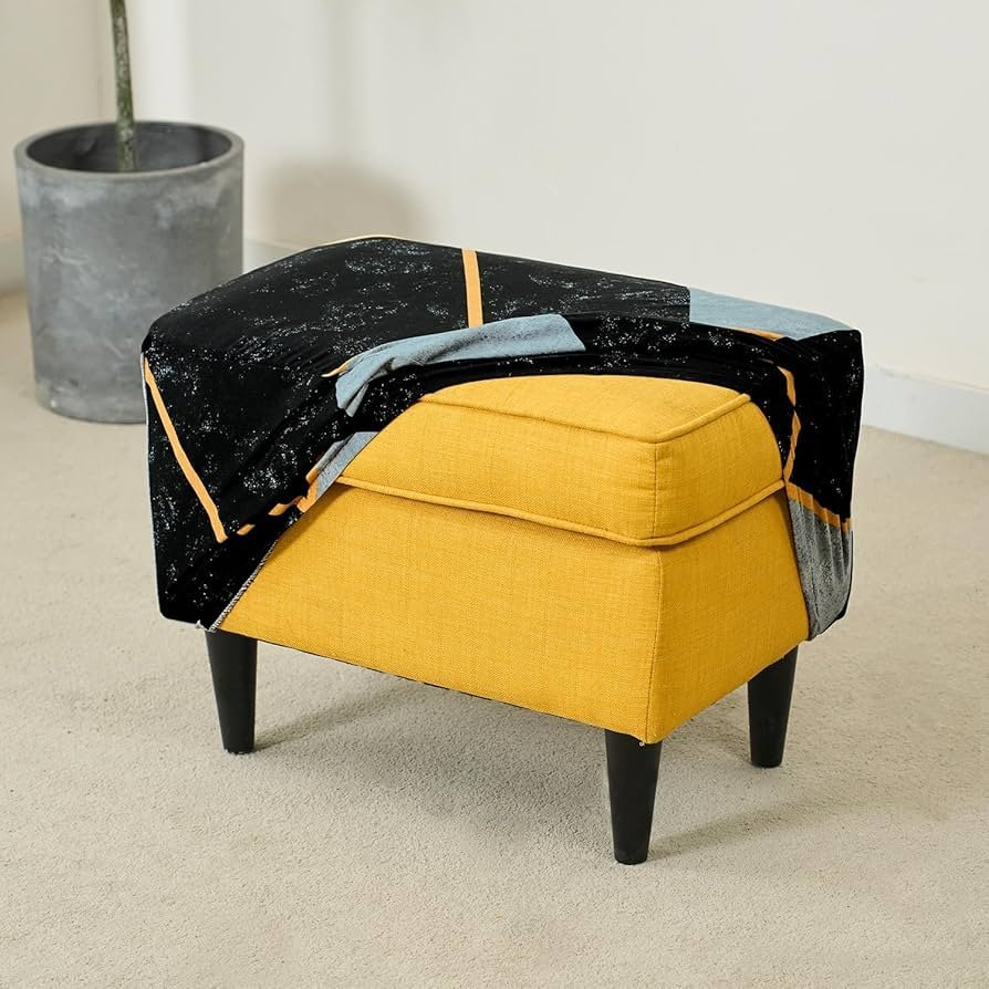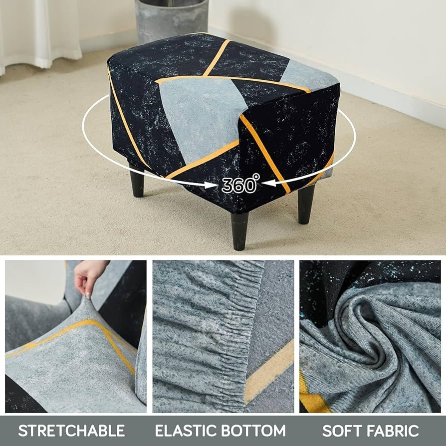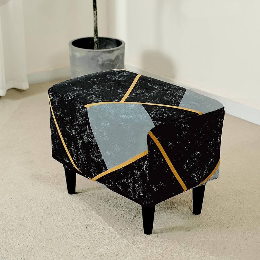 140gsm Footstool Cover Ottoman Slipcover, Stretch Fitted, Removable Washable, Multicolor Abstract Geometry