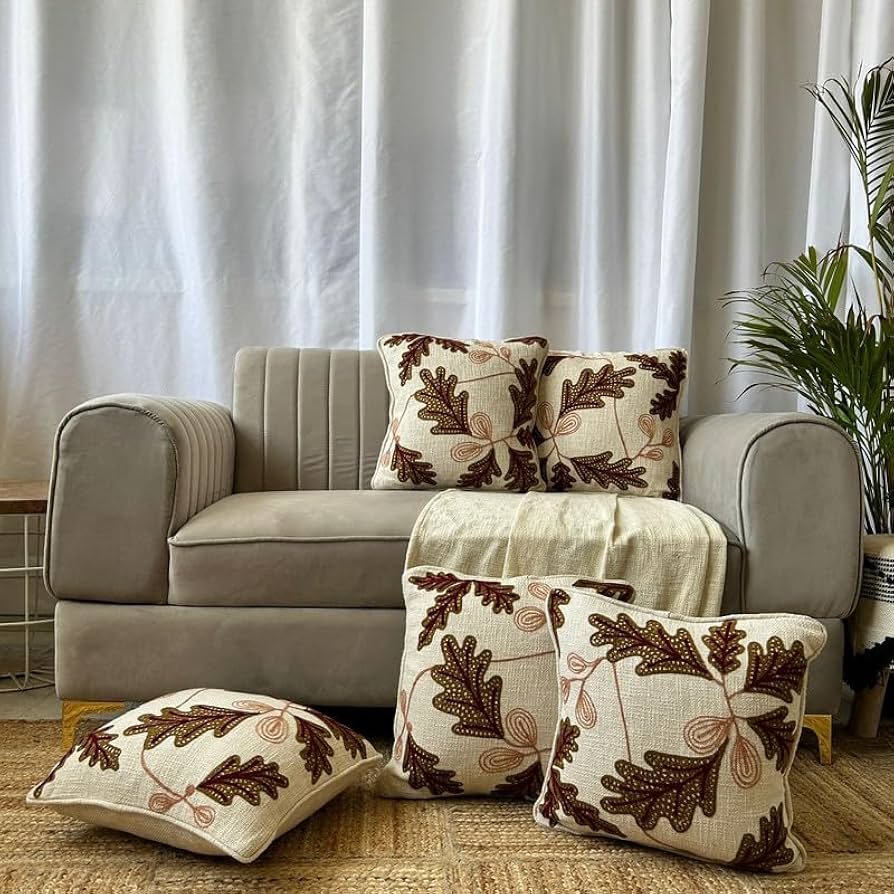 16×16 inch Soft Pillow Case with Hidden Zipper _ Embroidered Cushion Cases for Sofa, Bedroom, Livingroom, Chair, Car _ Set of 5 Cushion Cover for Home Décor