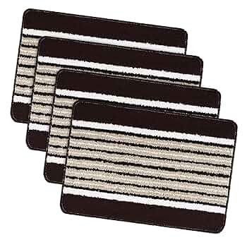 Set of 4 durable, water-absorbent door mats for bathroom, living room, office, and entrance. Anti-skid, machine-made microfiber mats keep floors clean and dry. Size: 16×24 Inch.