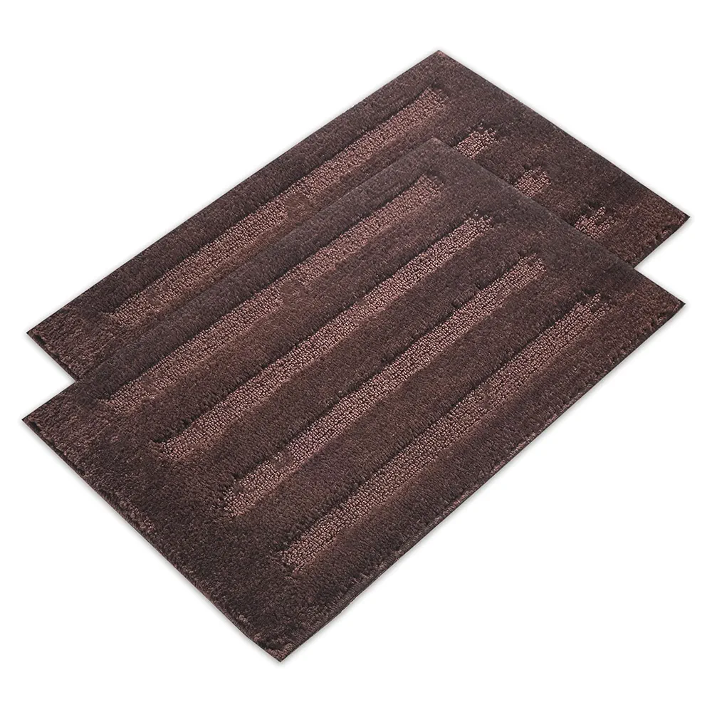 Set of 2 chocolate brown microfiber bathroom mats. Super absorbent, quick-drying, and anti-slip backing keeps floors dry, safe, and comfortable for feet.