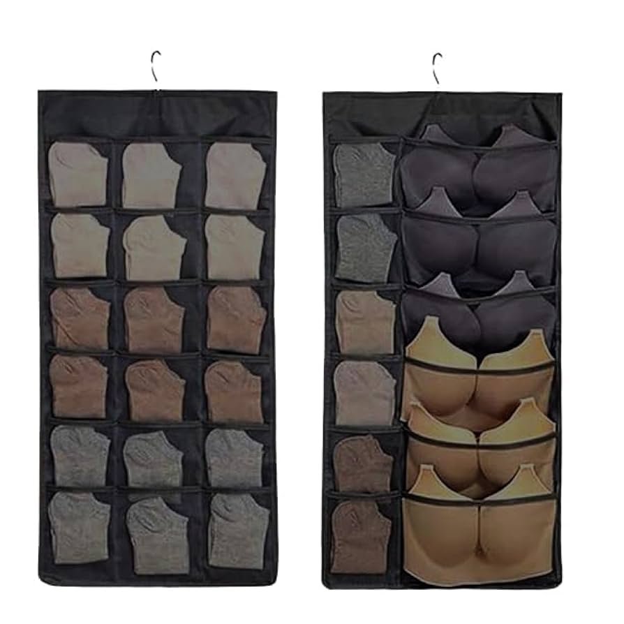 30-Pocket Double-Sided Hanging Closet Organizer | Underwear, Bra & Socks Storage | Wall-Mount Wardrobe Organizer | Black (Pack of 1)