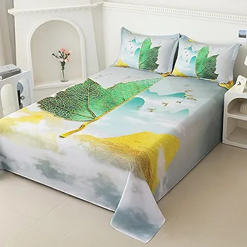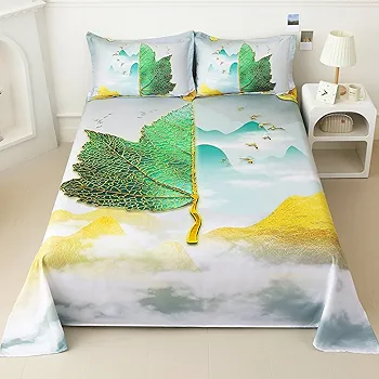 Bring elegance to your bedroom with this 300 TC satin finish king-size bedsheet in a dark blue & beige ethnic motif design. Soft, glossy, and durable, it comes with 2 matching pillow covers for a luxurious touch.
