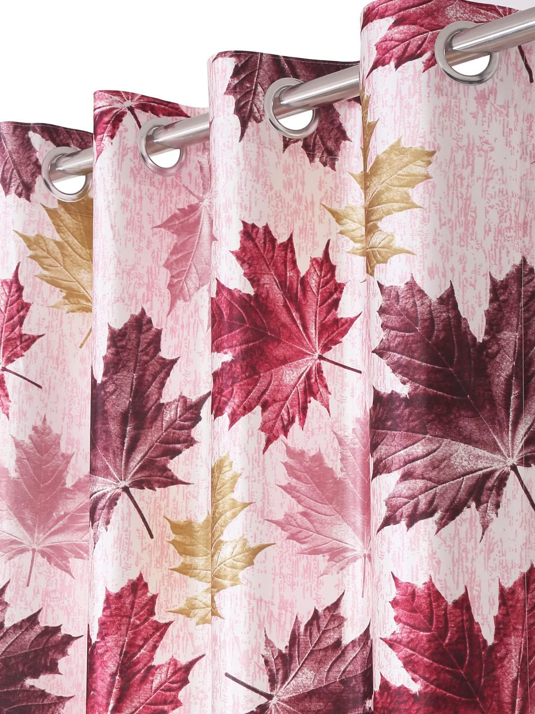 3D Maple Eyelet Polyester Window Curtains 2 pieces – 5 Feet, Maroon