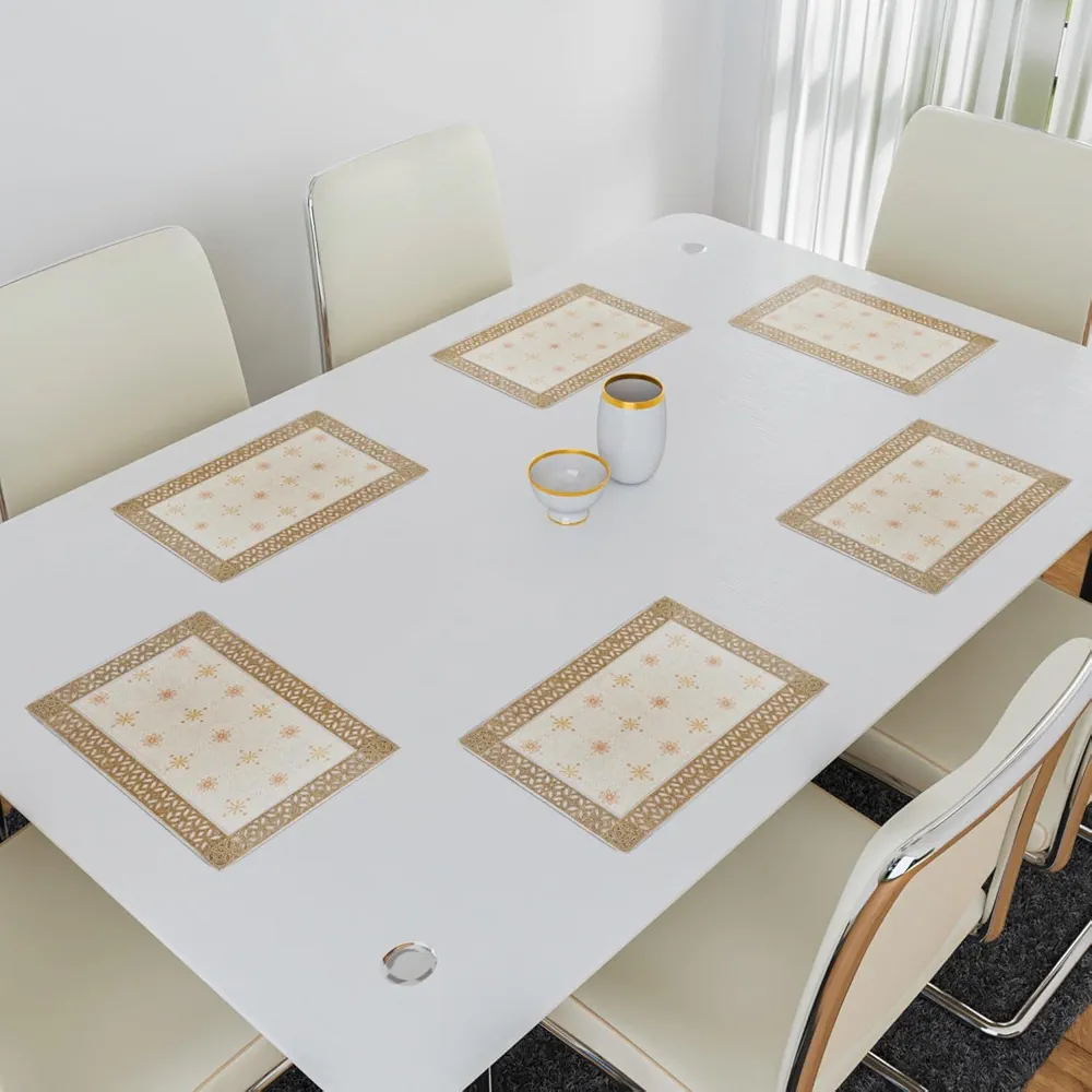 Elegant 6-piece PVC placemat set with Flower Maiva design in cream. Heat-resistant, easy to clean, and perfect for both casual and formal dining.