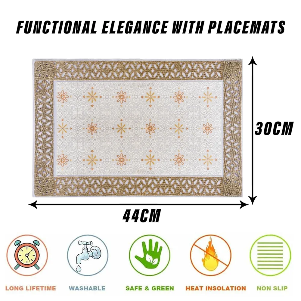 6-Piece Dining Table Placemat Set | Flower Maiva Design | PVC Table Mats for Kitchen & Dining | Cream | 44×30 cm