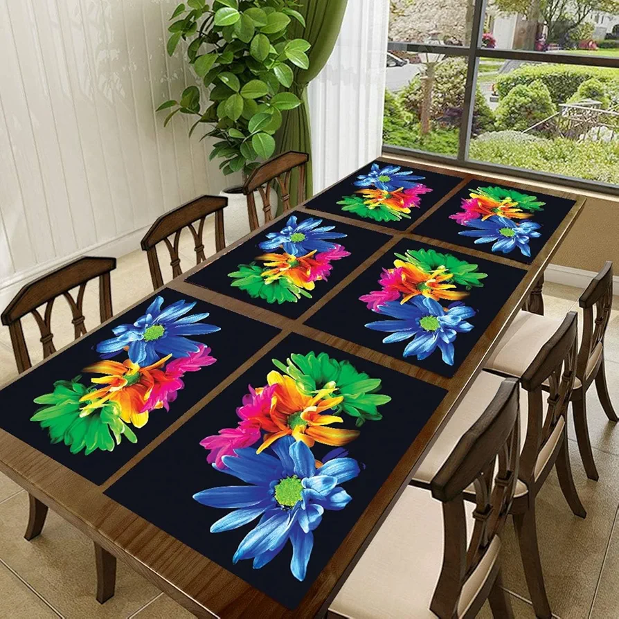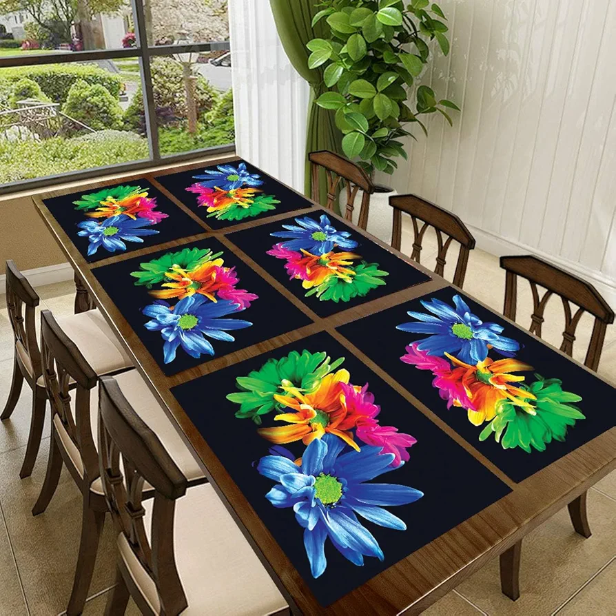 6-Piece PVC Dining Table Placemats | Washable, Waterproof & Heat-Resistant Reversible Table Mats | Plastic Placemats for Kitchen & Dining | Multi | 11×17 Inches