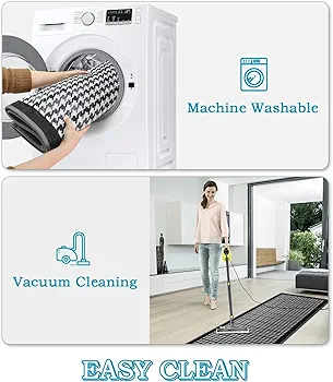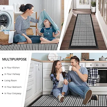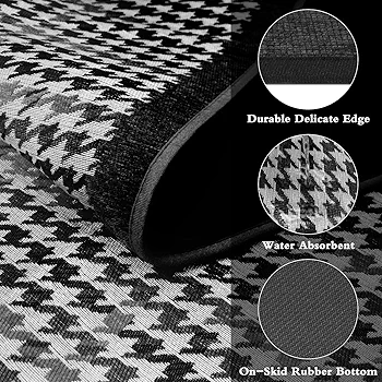 Keep your kitchen safe and comfortable with this black rectangular kitchen mat. Soft, absorbent, and wear-resistant with a non-slip rubber backing—perfect for indoor use.