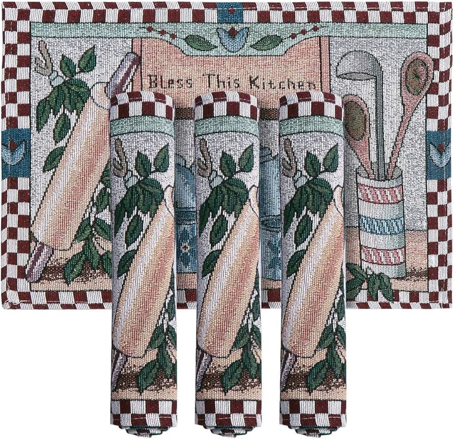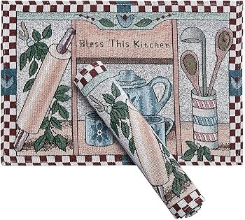 Bless This Kitchen Eco-Friendly Cotton Dining Table mats – Reusable, Machine Washable, Everyday Use Blue Rectangular Placemats, Set of 4 (33×47 cm)