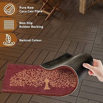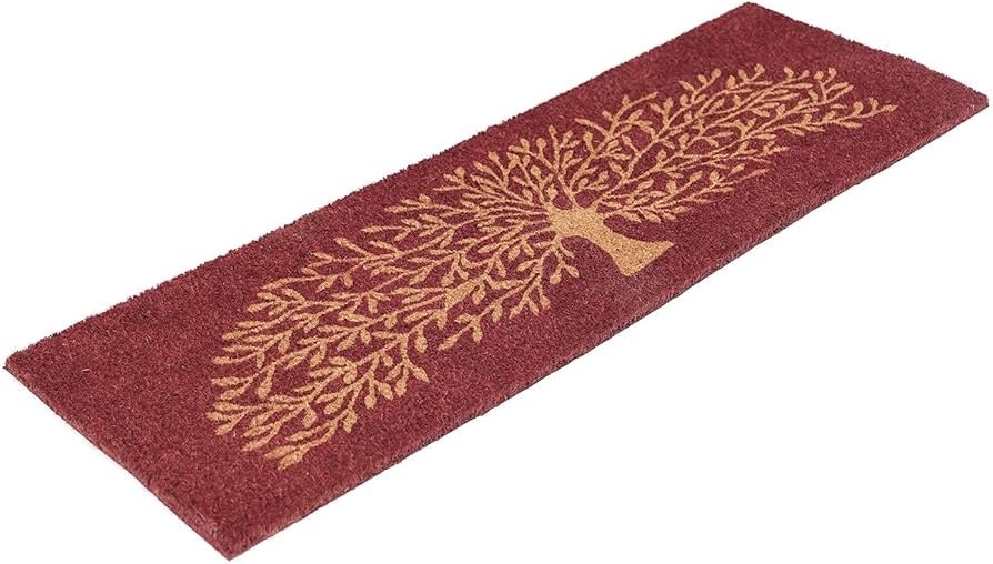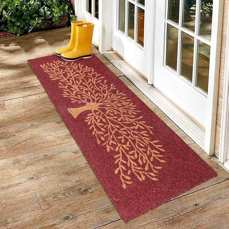 Coir Tree Printed Anti-Slip Doormat Long-Lasting, Heavy Duty Thick Entryway rectangular Rug with PVC Backing for Indoor & Outdoor (Red and Beige, 120cm x 1.5cm x 40cm)