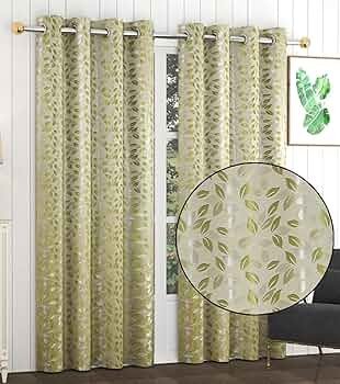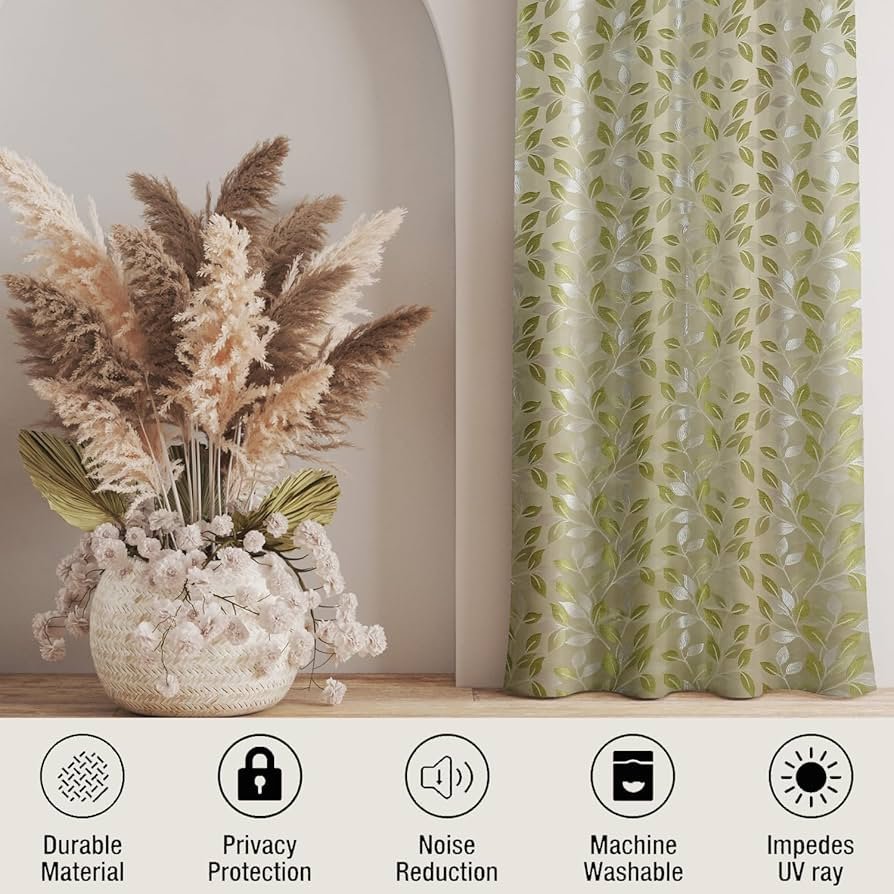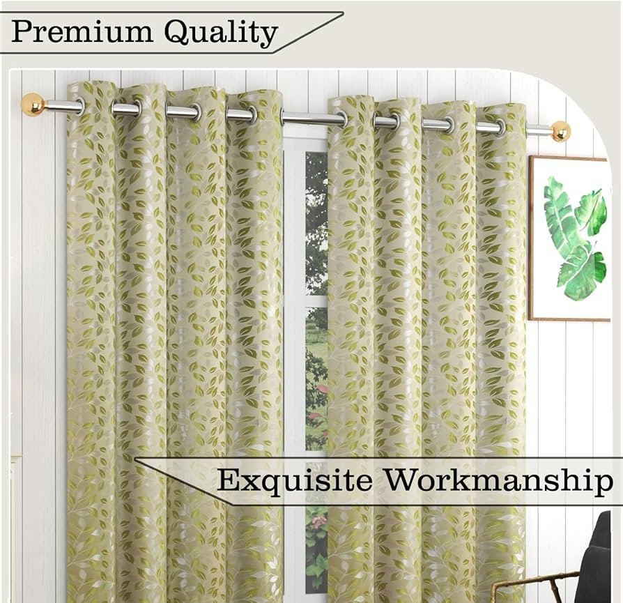 Curtains for Door 7 Feet Long Door Window Curtain Premium Polyester Weaved Parda Latest Modern Parde for Living Room Bedroom Home Office Screens Eyelet Ring (Green, 2pc)
