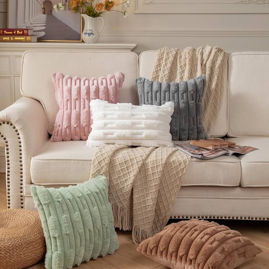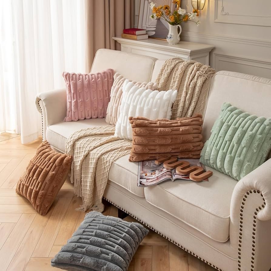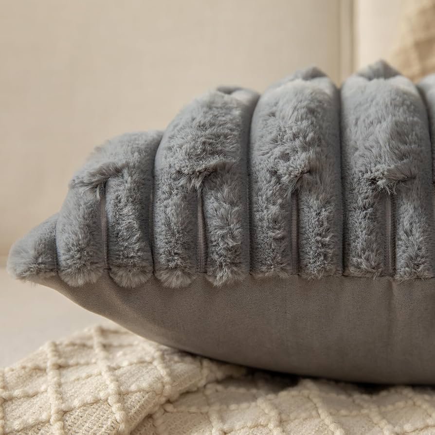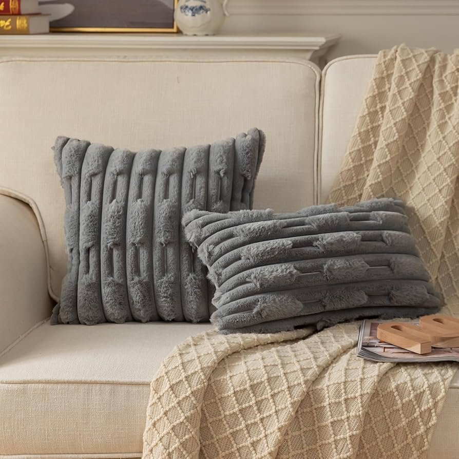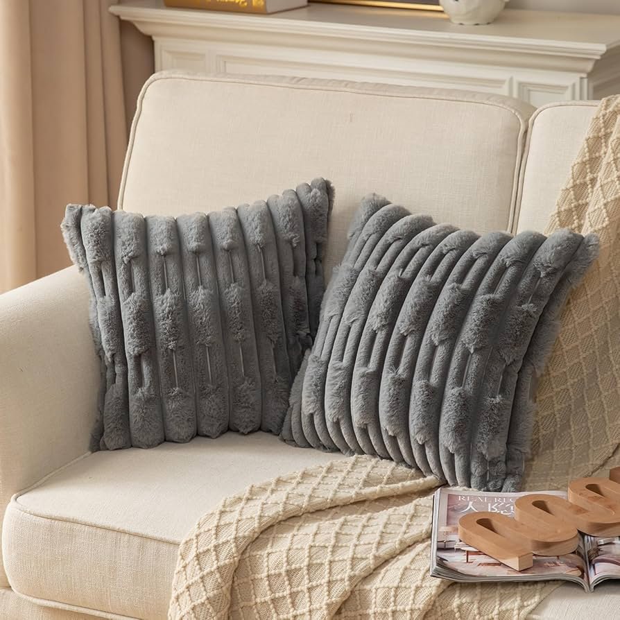 Cushion Covers, Faux Fur, Plush, Soft, Fluffy, Decorative, Modern Decoration for Living Room, Sofa, Car, Bedroom, Decor, Home, Office 16 x 16 Inches (Grey 2, 40 x 40 cm)