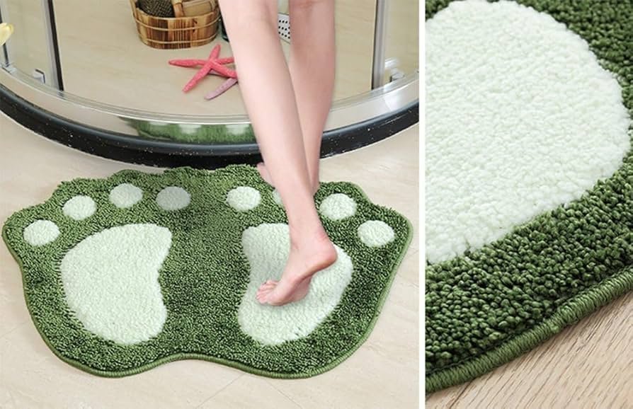 Green → Fresh and lively – the Green Cute Footprint Bath Mat blends style with absorbent practicality.
