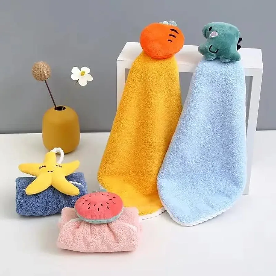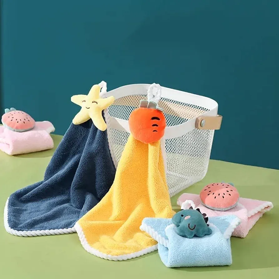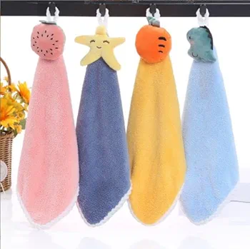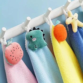 Cute Kids Hand Towels with Hanging Loop Toddler Hanging Hand Towels Microfiber Hand Towels for Bathroom Kitchen Home (2) | Multi