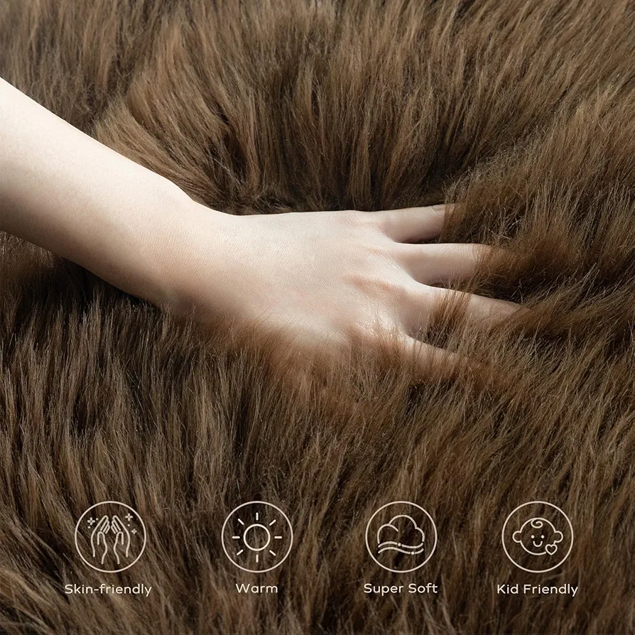 Dark Coffee Fluffy Shaggy Rug – 2×3 ft, Ultra Soft Faux Sheepskin, for Bedroom, Living Room & Nursery