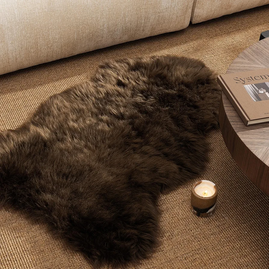 Add warmth and luxury to any space with this dark coffee fluffy sheepskin rug. Ultra-soft 2.8-inch pile and non-slip backing make it perfect for bedrooms, living rooms, or kids’ rooms.