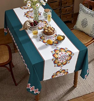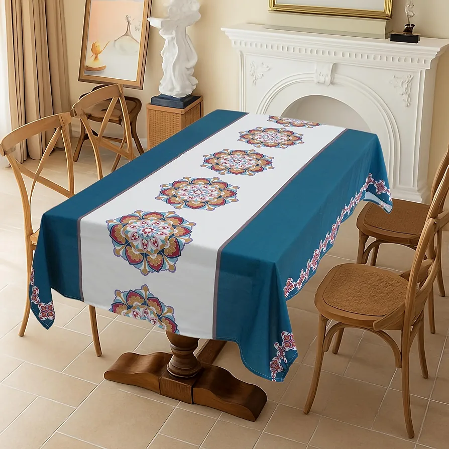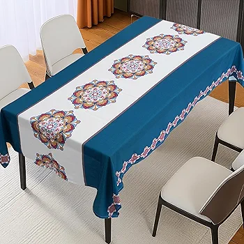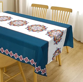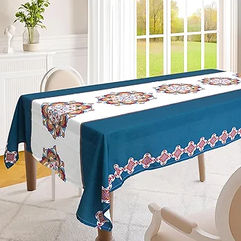 Diamond printed cotton dining table cover – anti-skid, thick, durable, and perfect for 6-seater tables.