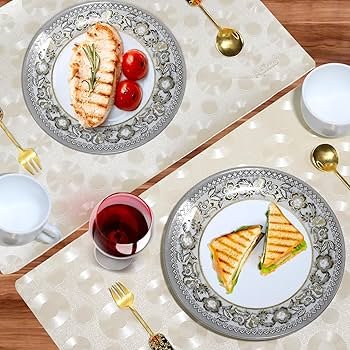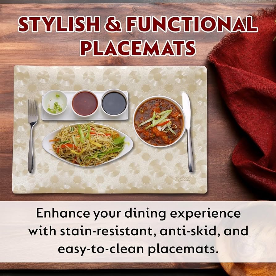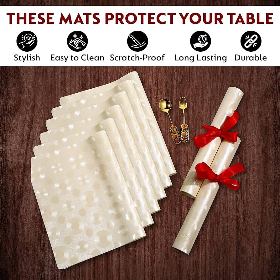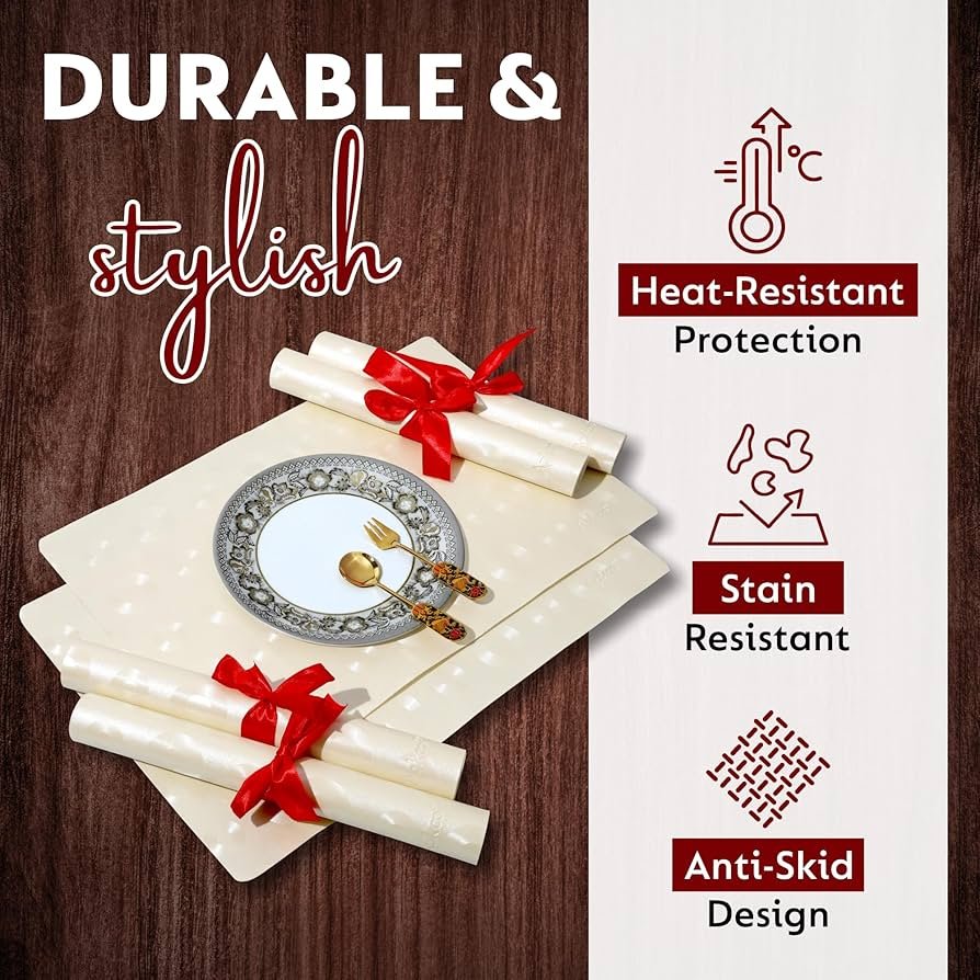 Dining Table Placemats Set of 6 _ Premium PVC Table Mat for Dining Table _ Non-Slip & Heat Resistant _ Washable Anti-Skid Table Mats _ Elegant Table Decor Place Mats