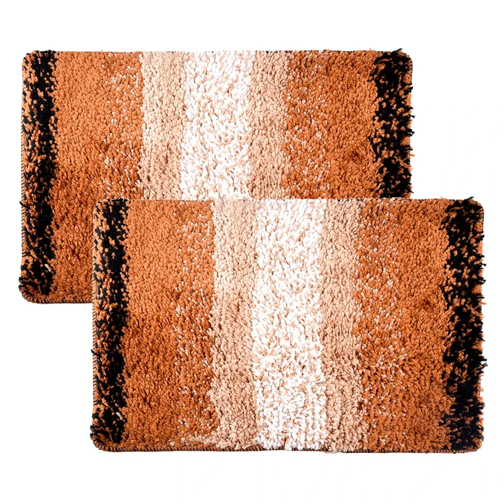 Set of 2 cream microfiber door mats with Golden Patta Rainbow design. Anti-skid, medium pile, and perfect for home entrances or entryways.