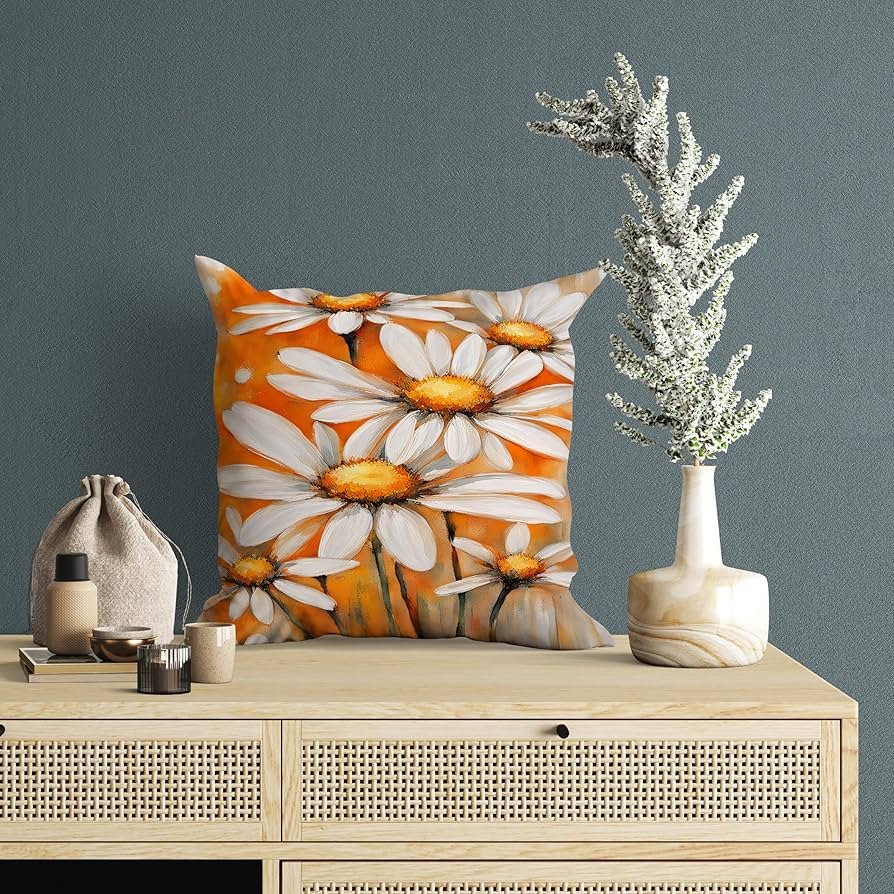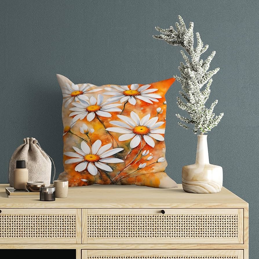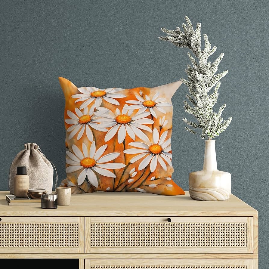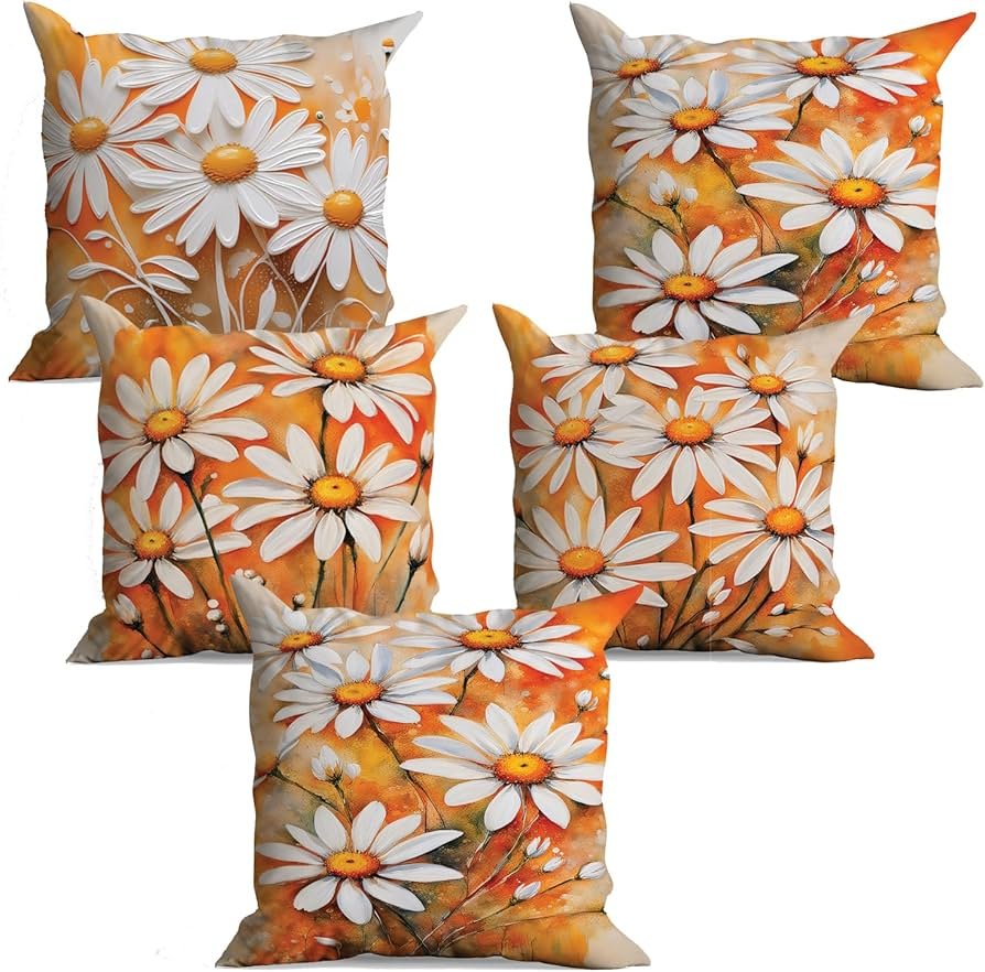 Flower Printed Cushion Cover Home Decorative Pillow for Sofa Soft Solid Square Throw Pillow Cushion Covers Satin Cushion Covers Set of 5 Size 16 x 16 Inch (Design 11)