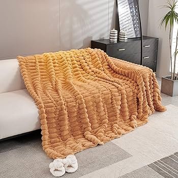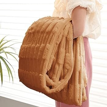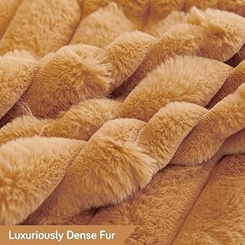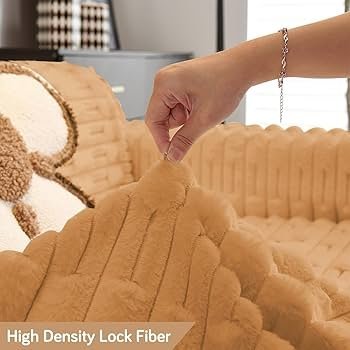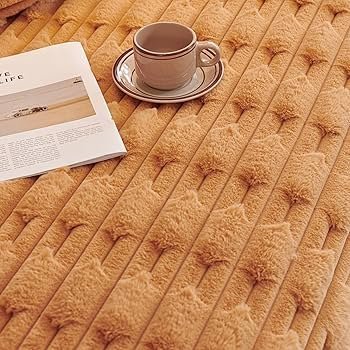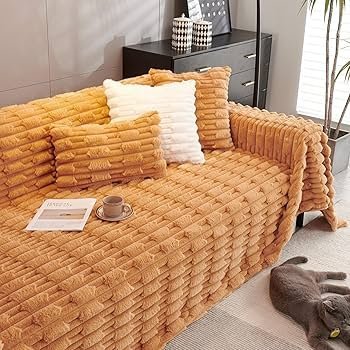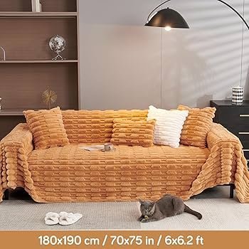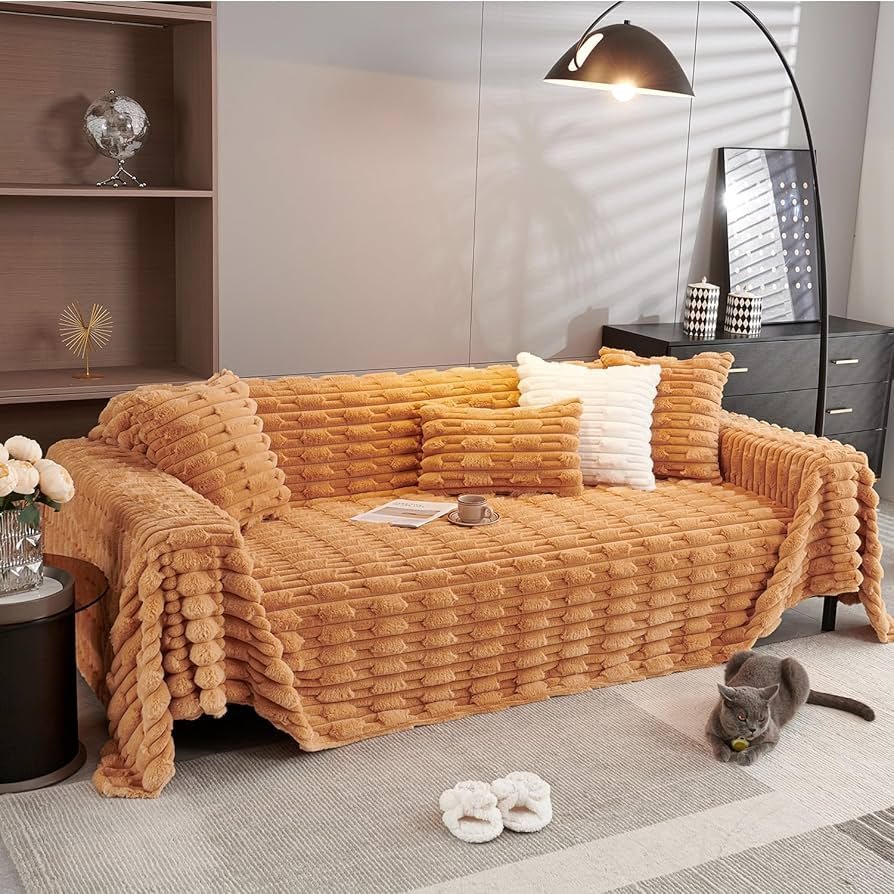 fur Luxury Waxy Rabbit Plush Fluffy Sofa Cover, Sofa Throw for 1 Seater Sofa, 180(D) x 190(L) cm, Ochre Brown _