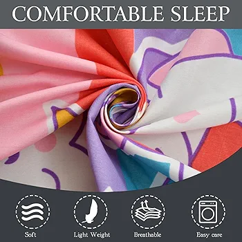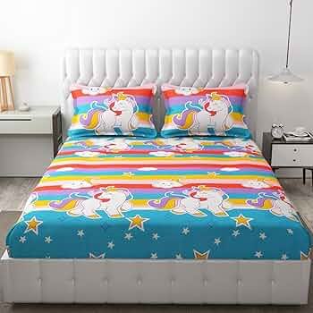 Brighten up your kids’ room with this unicorn cartoon printed double bedsheet (90×95 in). Made of soft hypoallergenic microfiber (144 TC), it is wrinkle-free, durable, and comes with 2 matching pillow covers.