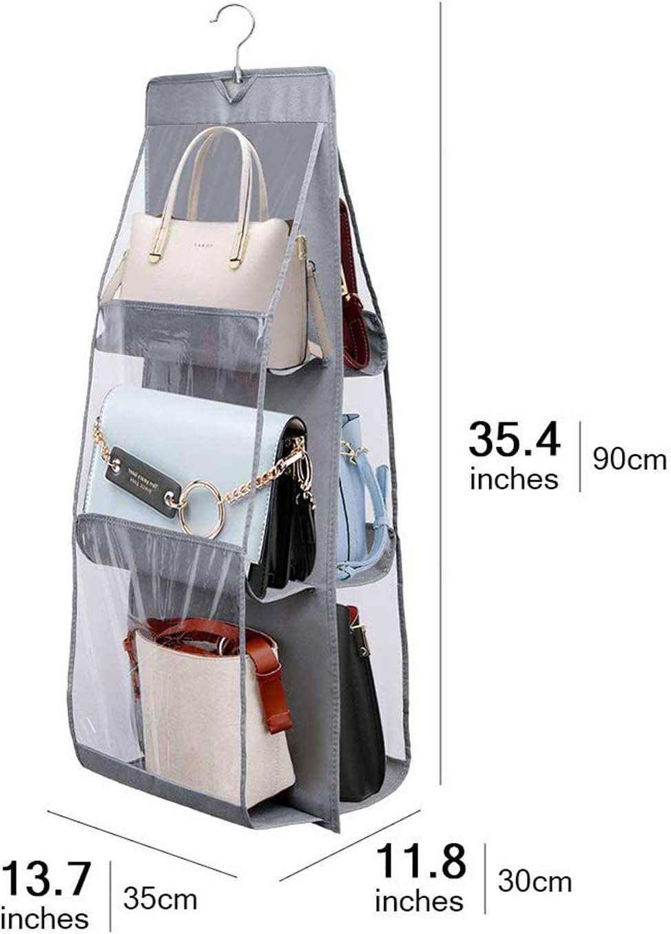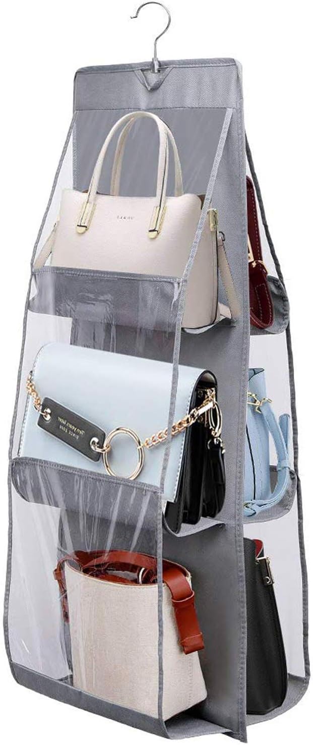Hanging Handbag Organizer Dust-Proof Storage Holder Bag Wardrobe Closet for Purse Clutch with 6 Pockets (Grey) (Non Woven Fabric,Matte)