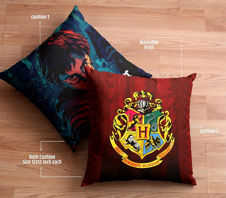 Harry Potter Cushion Cover 12×12 Inches – Multi-Color Art Deco Print | Magical TV Series Theme