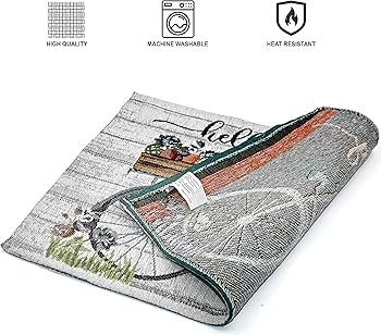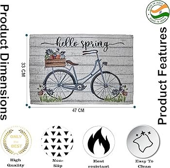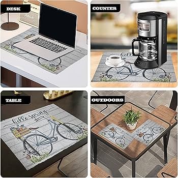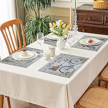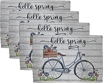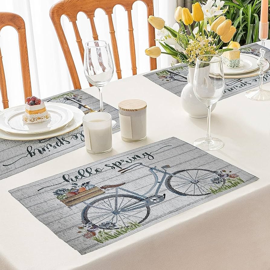 Hello Spring Bicycle Eco-Friendly Cotton Dining Table mats – Reusable, Machine Washable, Everyday Use Blue & White Rectangular Placemats, Set of 4 (33×47 cm)