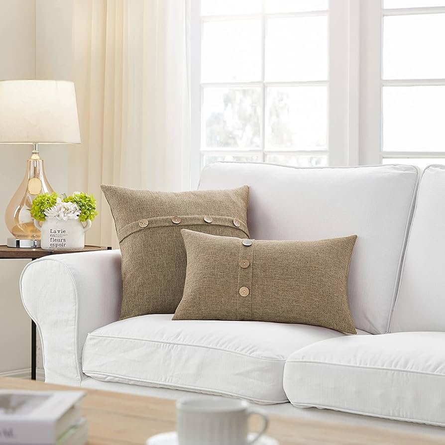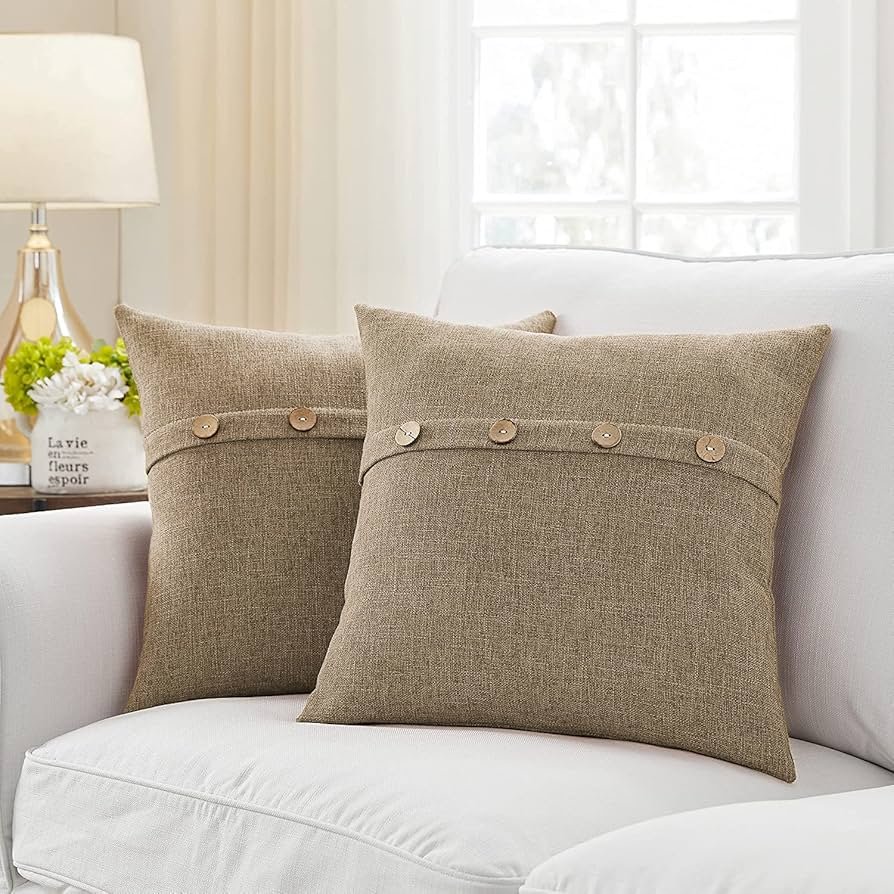 Jute Square Cushion Cover with Buttons Throw Pillow Cover for Living Room Couch Diwan Sofa, Modern 16 x 16 Inches – 40 x 40 cm (Color – Light Umber)(Set of 2 Pieces)