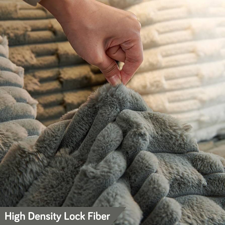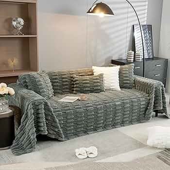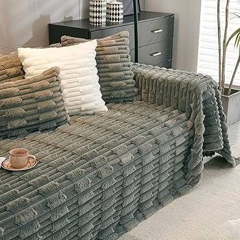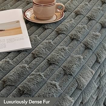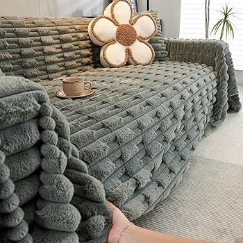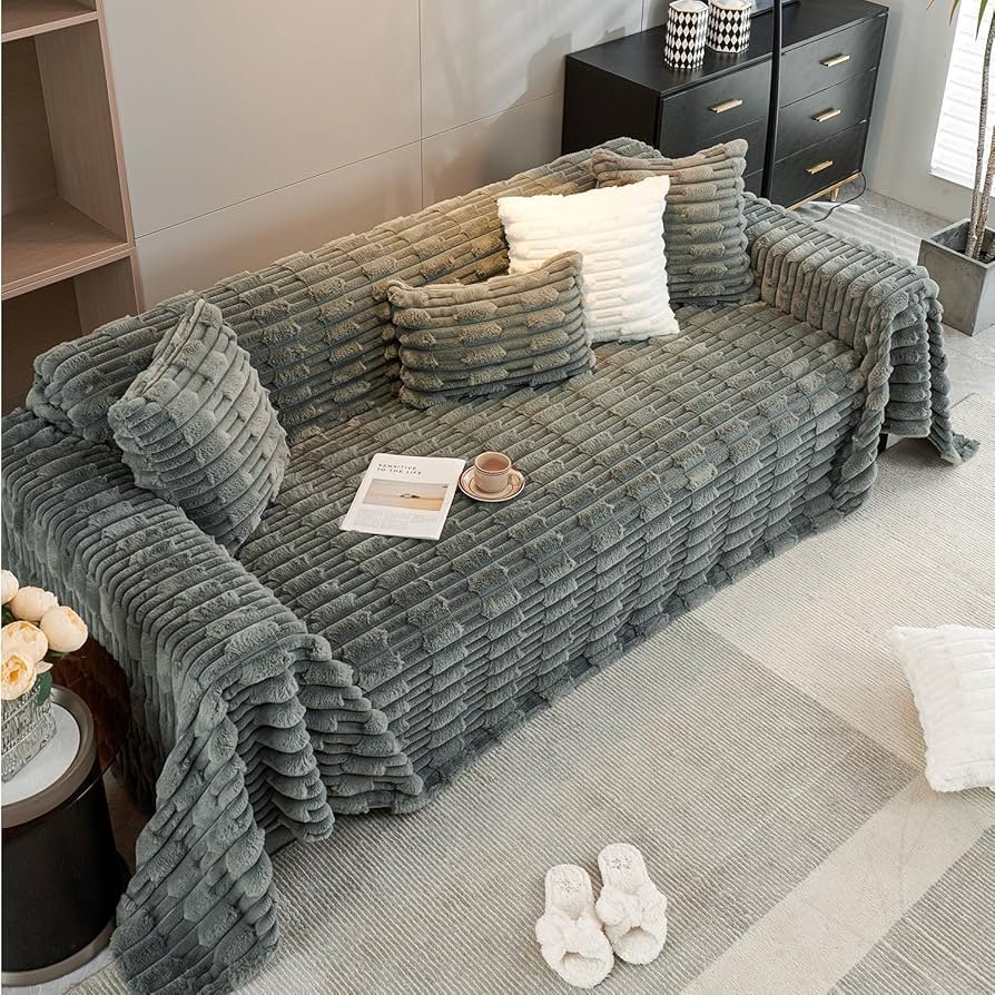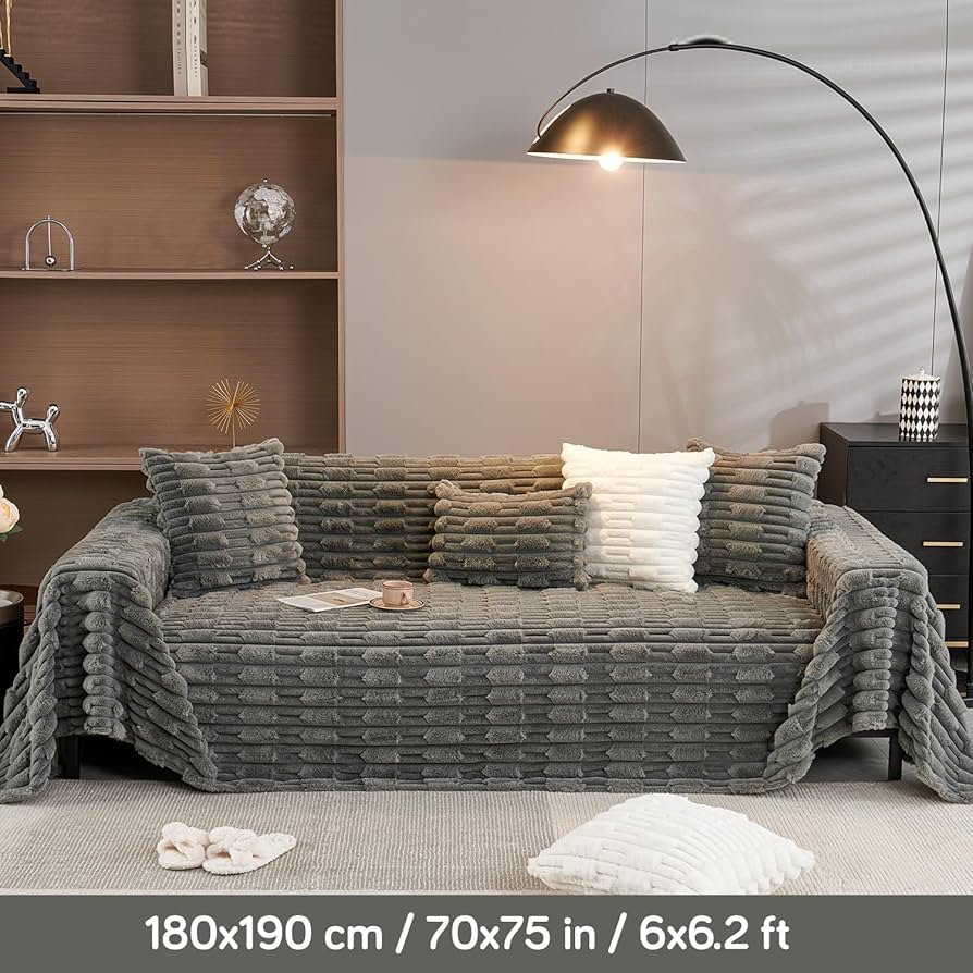 Luxury Waxy Faux Rabbit Plush Sofa Throw, Fluffy Sofa Cover for 1 Seater Sofa, 180(D) x 190(L) cm, Charcoal Grey