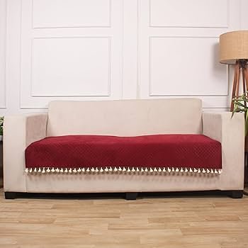 Maroon Quilted Velvet Sofa Cover – Washable, tassels, luxurious & soft, protects from spills, stains, and pets. Rs. 500 inclusive of taxes.