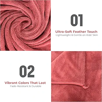 Soft and absorbent microfiber kids bath towel (140 x 70 cm, Red). Gentle on sensitive skin, lightweight, quick-drying, and perfect for newborns, toddlers, and kids up to 10 years.