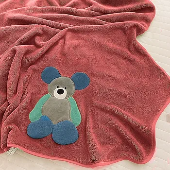 Microfiber Kids Bath Towels-Quick Drying Towels for Unisex Kids-Teddy Bear Print Baby Towel for Boys and Girls-70 x 140 Cms (Pack of 1,Red)