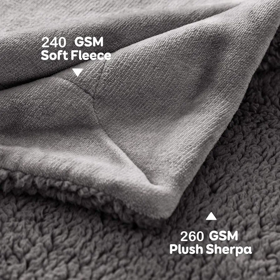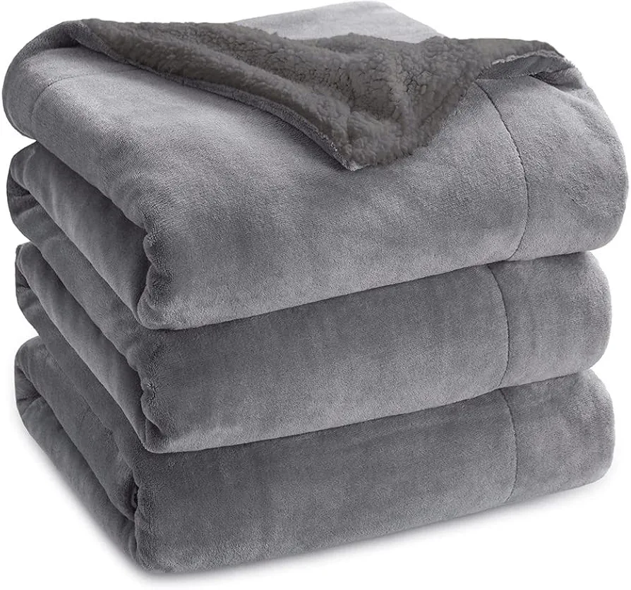 Micromink Sherpa Blanket – Reversible Flannel & Sherpa, Super Soft All-Season Blanket for AC, Summer & Winter (Double, 220×228 cm, Silver Grey)