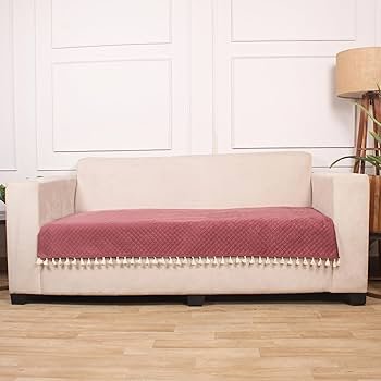 Peach Quilted Velvet Sofa Cover – Washable, tassels, durable & soft. Protects from spills, stains, and pets.