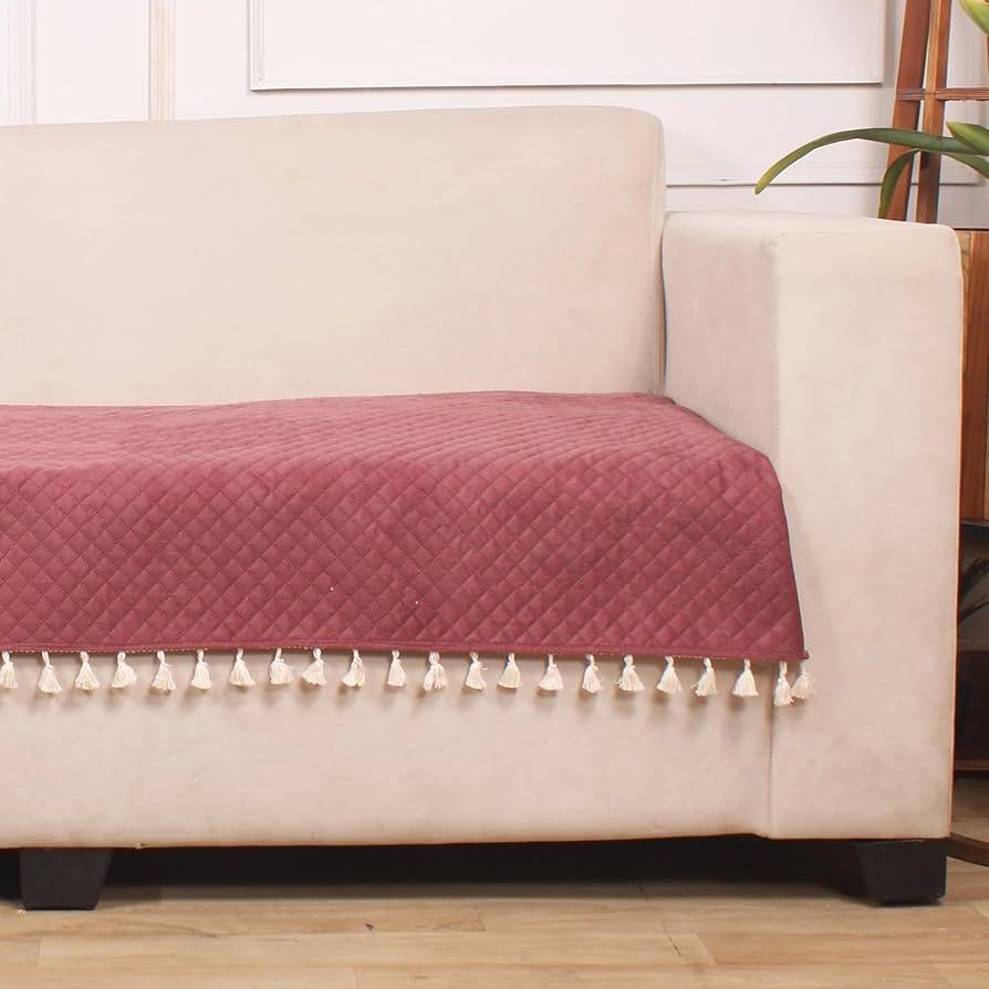 Peach Quilted Velvet Sofa Cover – Washable, Tassels, Luxurious & Durable