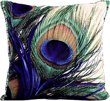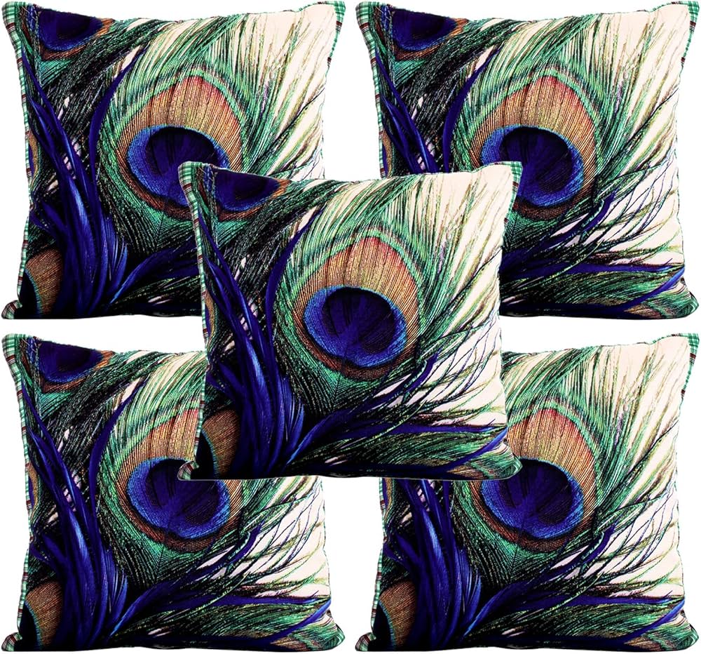 Peacock Wings Design Cotton Decorative Cushion Covers (16 X 16 Inches) Set of 5