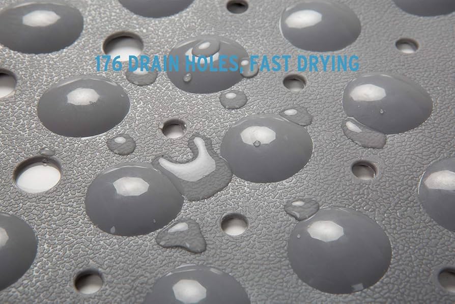 - mat also has many other advantages. The top texture of the mat is designed such a way to get a good grip with your feet and also gives a massage feel. It also helps to exfoliate the dead skin on your feet. There are 270 Drain holes to ensure there is no water logging on the mat