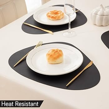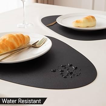 Premium Faux Leather Dining Table Mats, Heat Resistant Leak and Waterproof Non Slip Dinner Mats, 6 Pcs, Black (AR-5188-BLK_6)