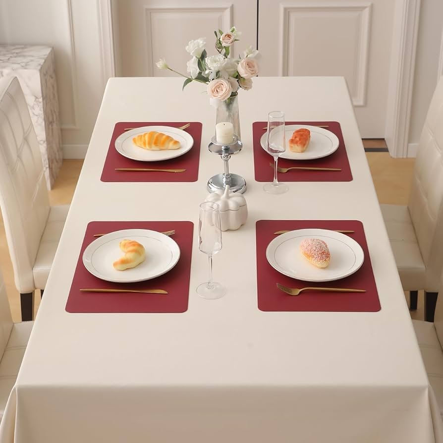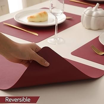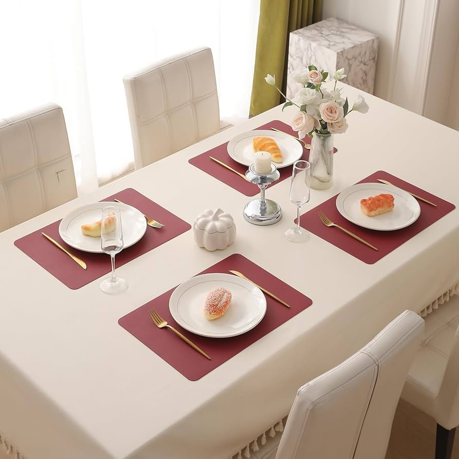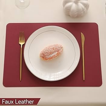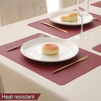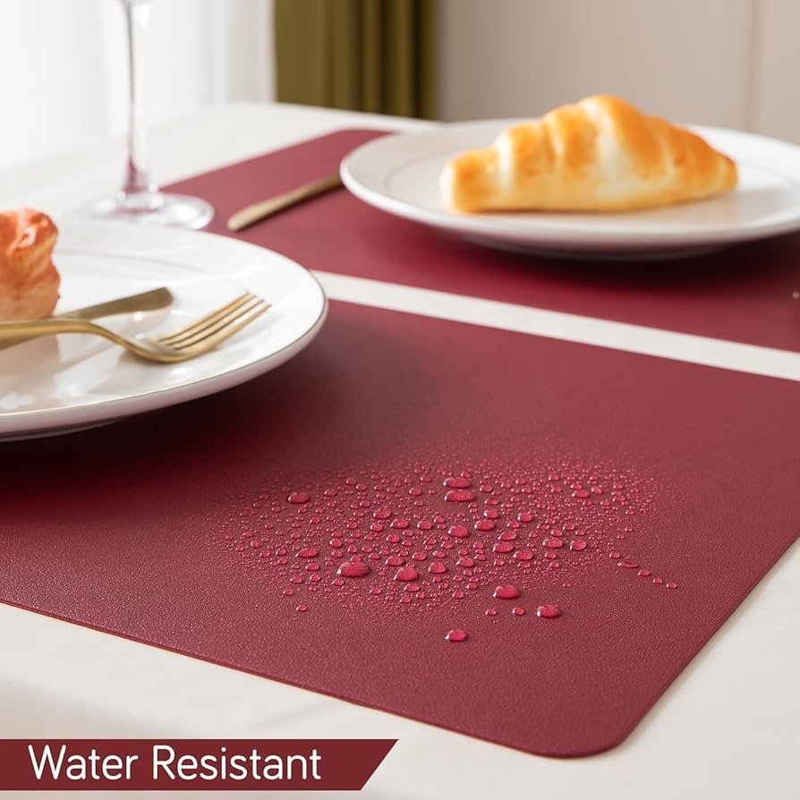 Premium Faux Leather Dinner Table Mat, Heat Resistant Leak and Waterproof Non Slip Dinner Mats, 4 Pcs, Dark Red