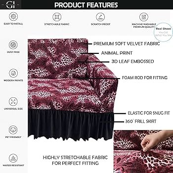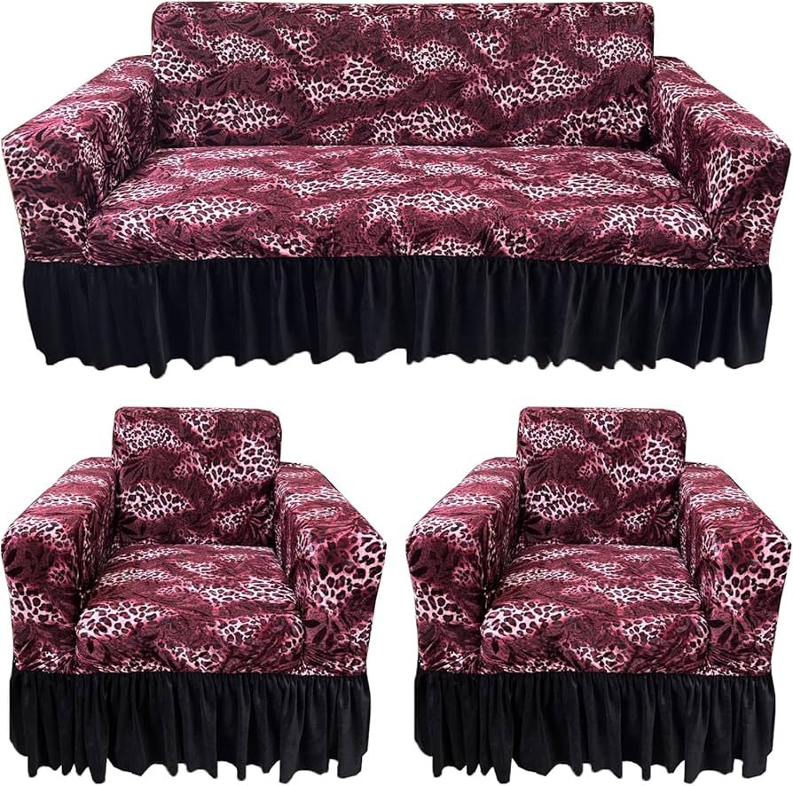 Premium Maroon Cheetah Velvet Sofa Cover – Stretchable, anti-slip, wrinkle-free, and soft. Perfect fit for Living Room, Dining Room, and Bedroom. Rs. 500 inclusive of taxes.