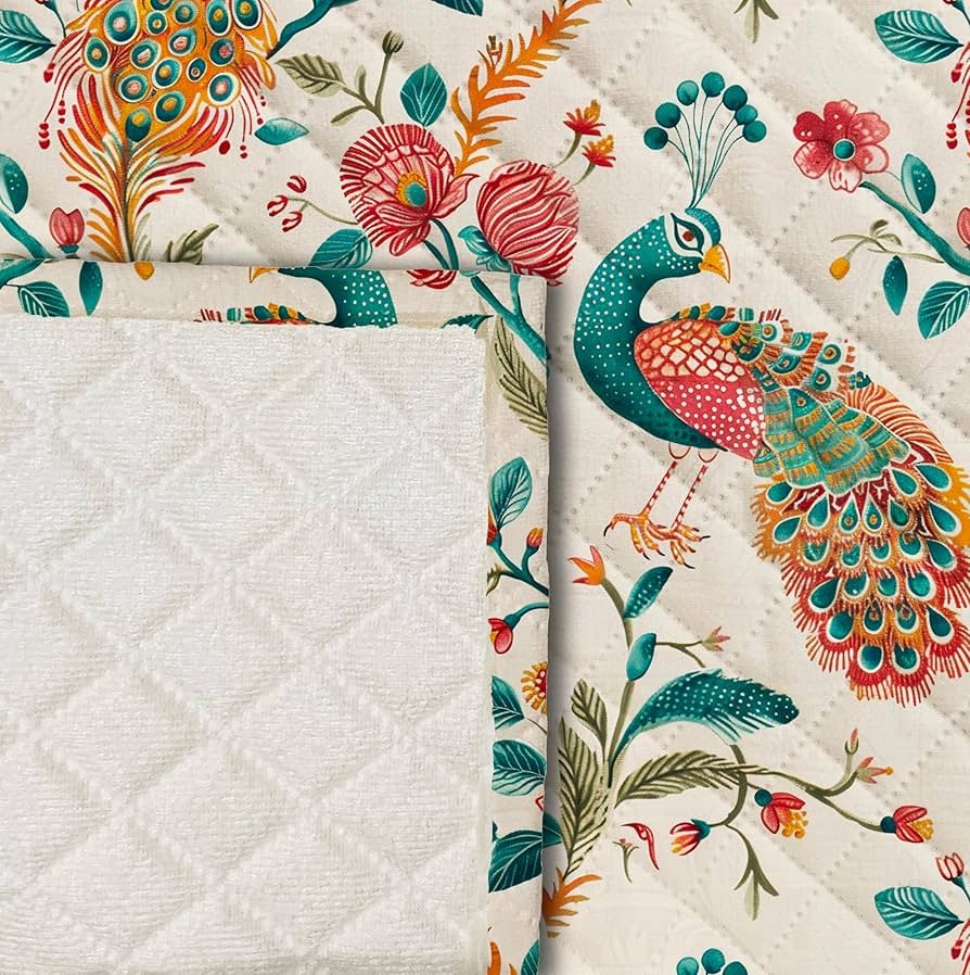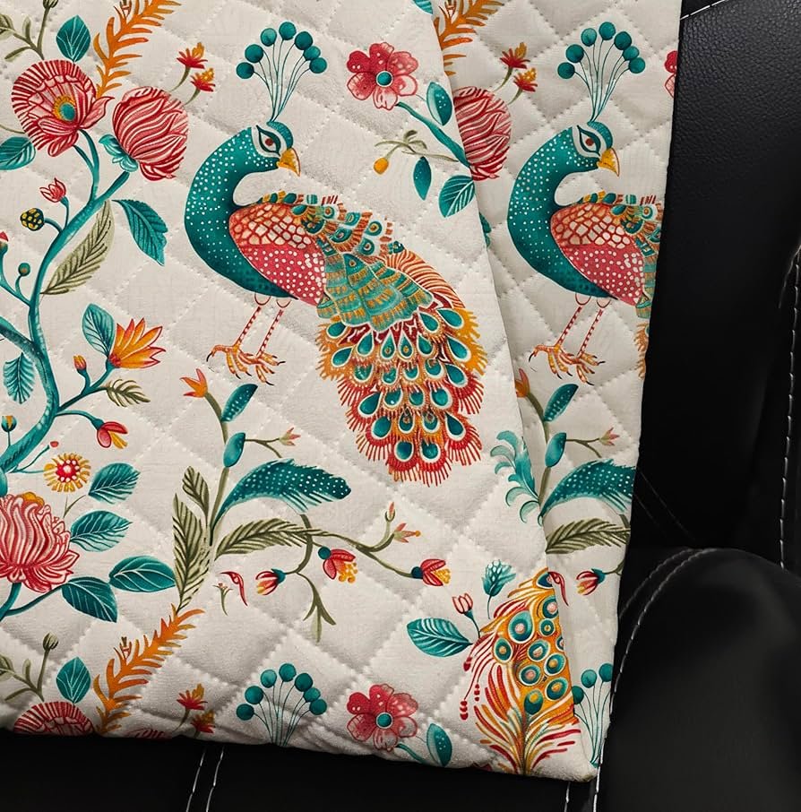 Protect and style your sofa with our quilted velvet sofa cover mat. Dustproof, comfortable, and perfect for 5-seater couches (Peacock, Multicolor).