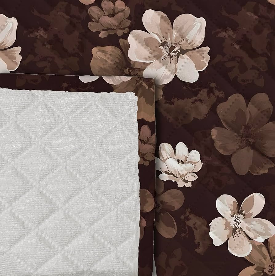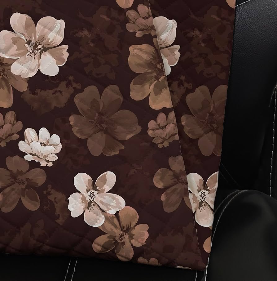 Soft quilted velvet sofa cover in Coffee Brown Flower. Floral, dustproof, and ideal for 5-seater sofas.