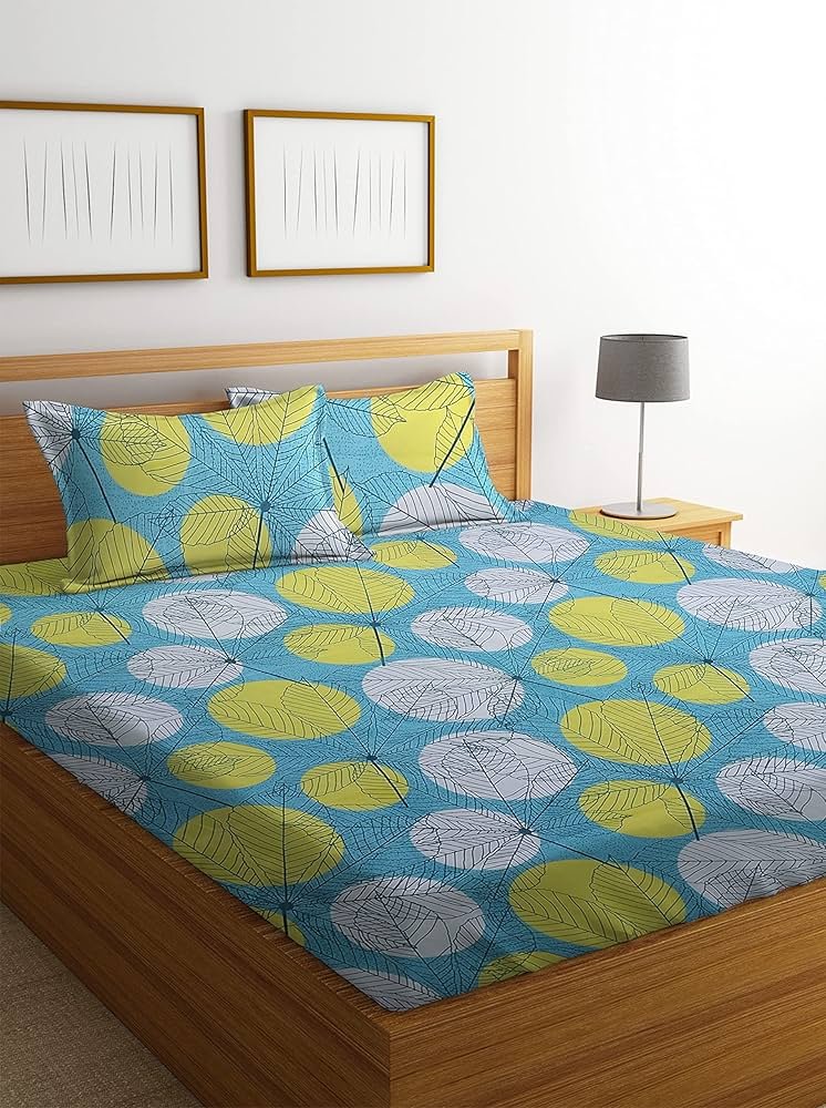 Printed 144 Tc Microfiber Double Bedsheet with 2 King Size Pillow Covers Breathable _ Wrinklfree _ Summer _ Topsheet (Light Green and White Cricle Print, 90 x 90 Inches)