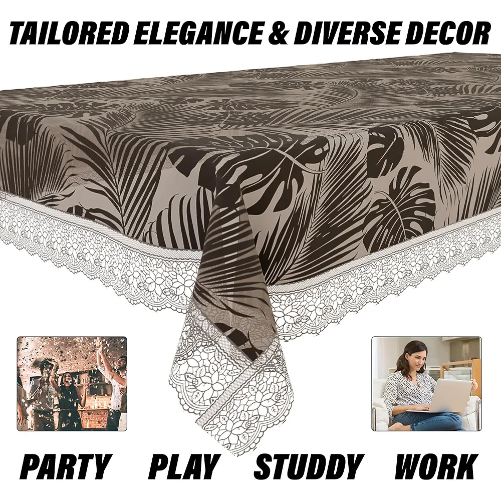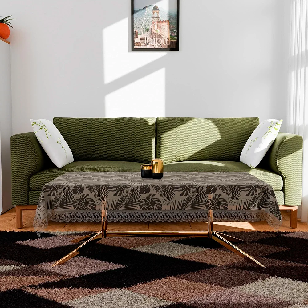 Stylish 3D Leaf design PVC table cover in brown, perfect for 4-seater center tables. Durable, waterproof, and eco-friendly with a snug, elegant fit.