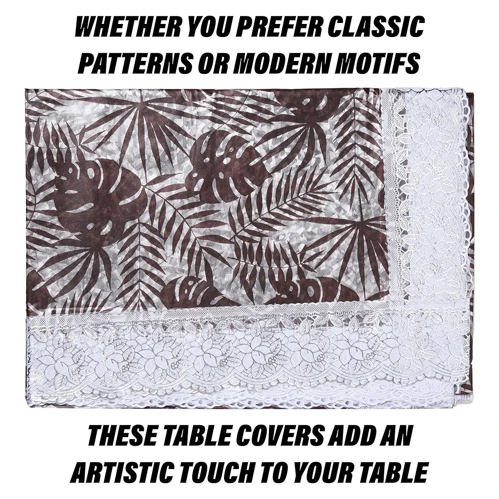 PVC Table Cloth Cover | 4-Seater Center Table Protector | 3D Leaf Design | Waterproof Table Cover | 40×60 Inch (Brown)