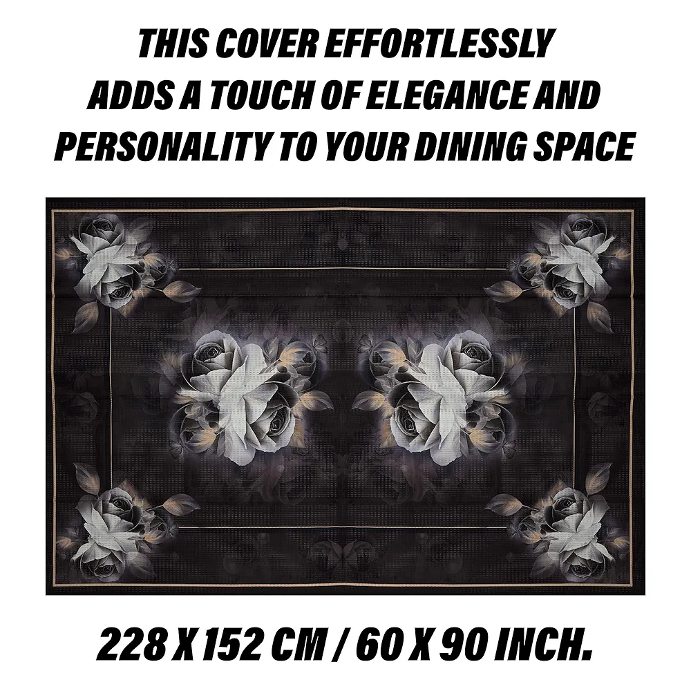 Rectangular Cotton Dining Table Cover | 6-Seater Table Cloth | Gulab Painting Design | Elegant Table Linen | 60×90 Inch (Brown)