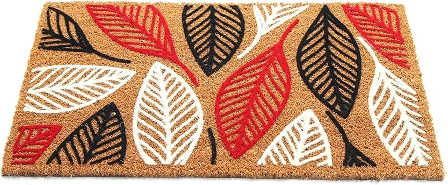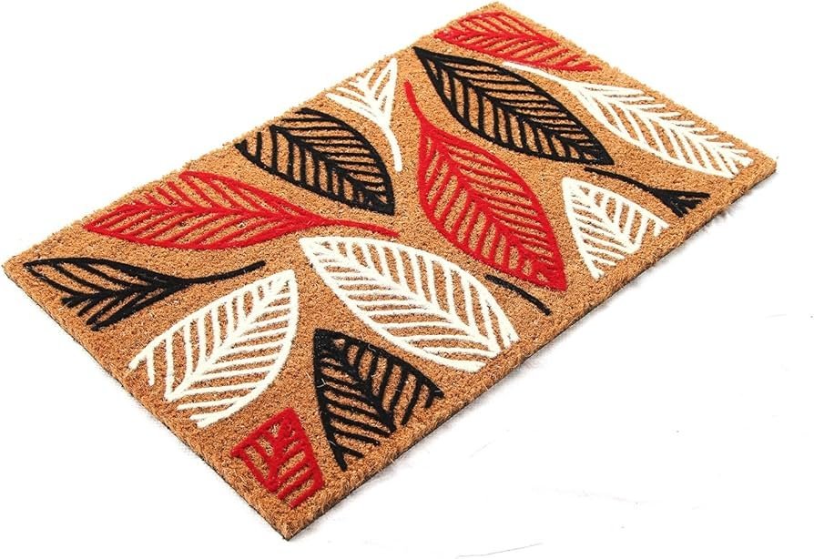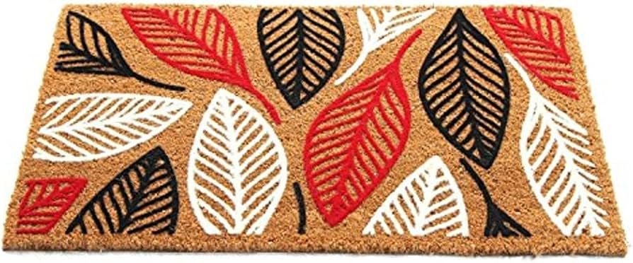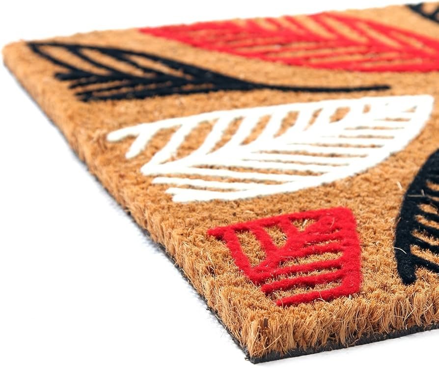 Red & Black Leaf Design, Anti-Slip PVC Backing for Entryway, Livingroom, Kitchen, Bedroom (75 x 45cm)