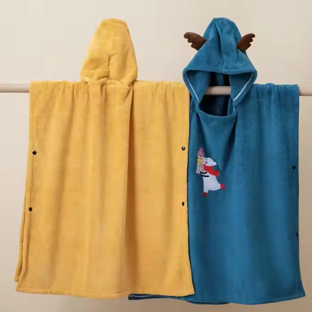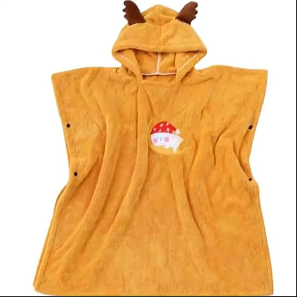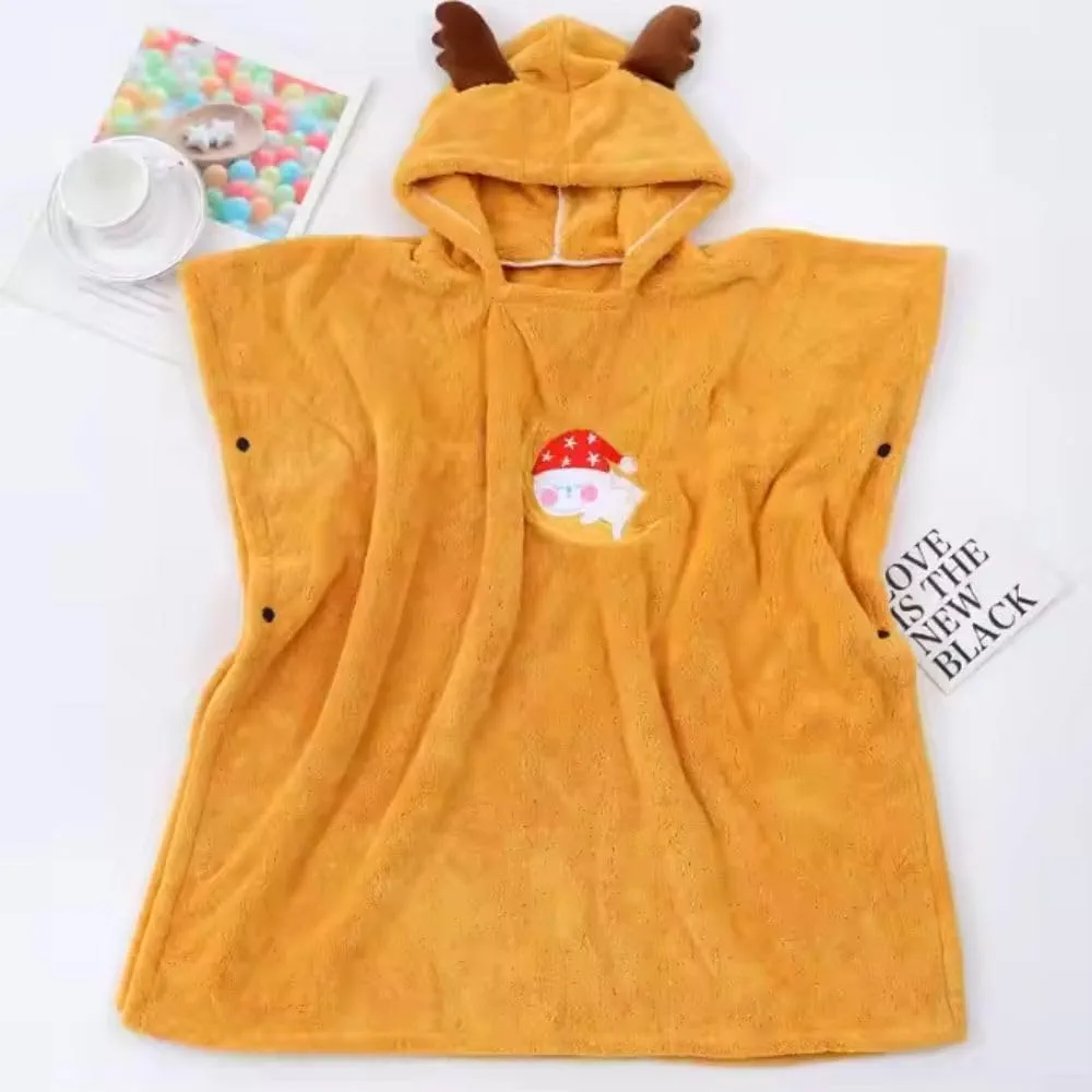 Reindeer Ears Hooded Poncho | Soft, Skin-Friendly, Breathable Coral Fleece Fabric with Snap Closure | 2–7 Years Kids Cartoon Bath Towel with Hood – Yellow